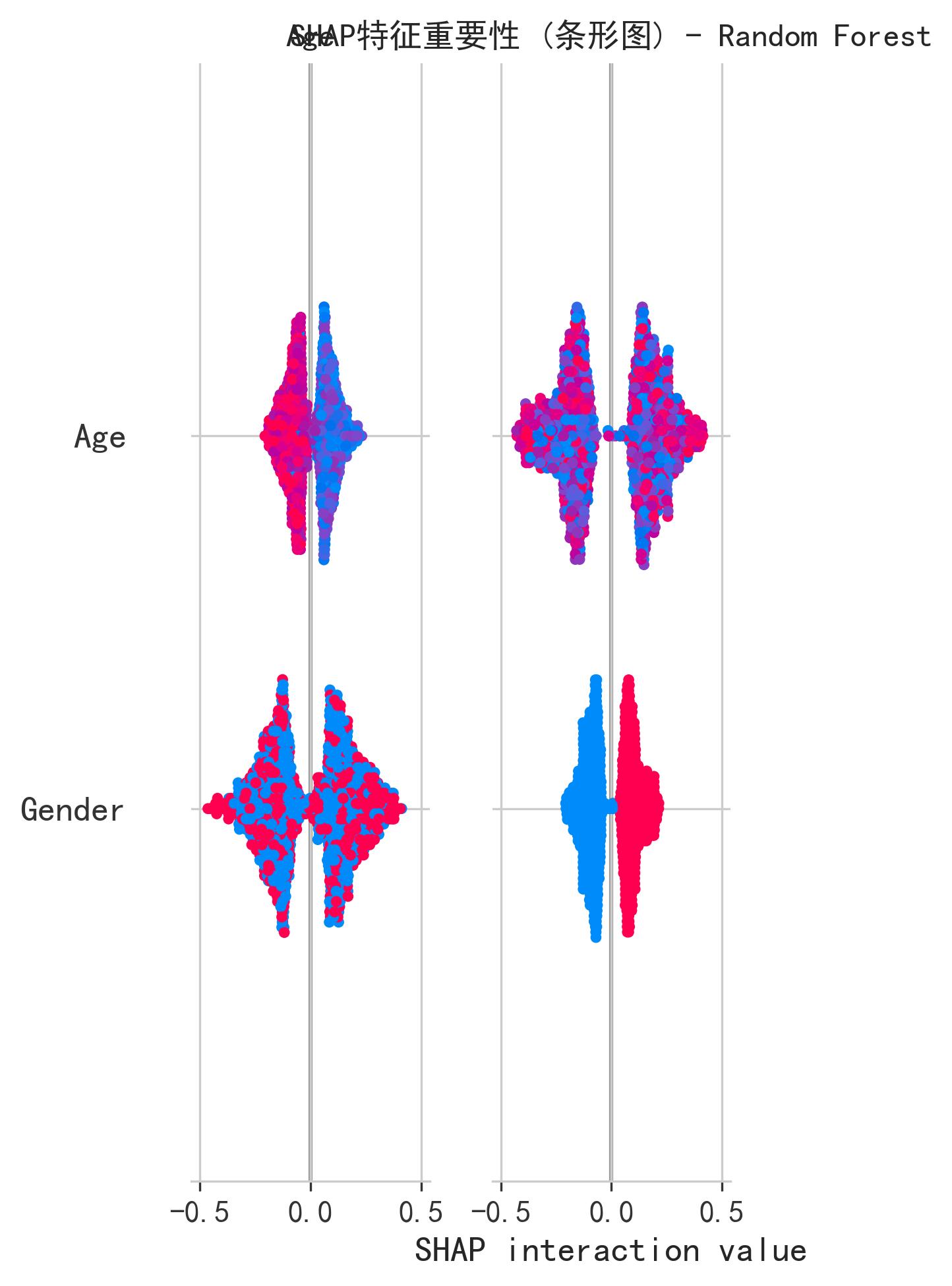 关键发现: 特征排名差异并非"错误",而是度量方法差异导致的合理结果。Pearson 相关系数只能衡量线性关系,因此 Cancer History(二元变量,强线性)排名第一。SHAP 值基于树模型的非线性分裂,能捕捉年龄与癌症之间的阶梯式风险递增关系——年龄从 20 岁到 80 岁的癌症风险不是线性增长,而是在某些年龄段(如 50-60 岁)出现跳跃式上升。这一发现是对原论文的有价值补充。
